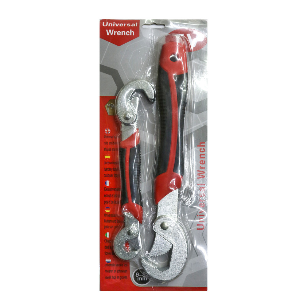 Universal wrench set is a self-adjusting technology for nuts and bolts of all sizes 9-32mm and shapes. The overall heat temperature with chrome-plated surface, hardened and durable. It can be used with all systems of measurement which is effective, practical, lightweight system with just a hand movement. This is used for fittings, valves, pipes and piping, radiator boilers, wheel etc.